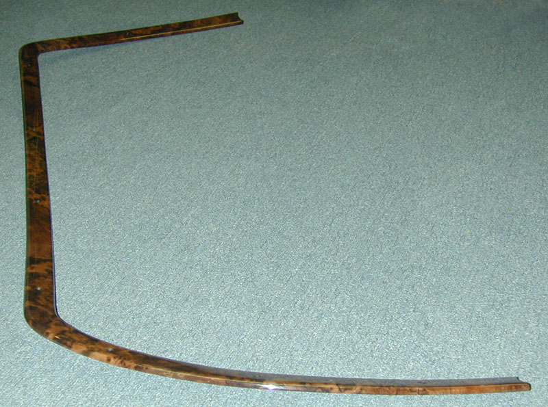The rear window trim pictured below in Burled Walnut, IS NOT the Item for sale in this lisiting....but we are showing it so you can see how we designed and built our replacment part to bow inward across the top of the rear window...AND we made the "legs" bow outward, following the contour of the body. This provides the Proper Profile - so it fits your car properly. (if you want to buy the Burled Walnut Rear Window Trim (below), go back to the For Sale page and select Item # 2113) |