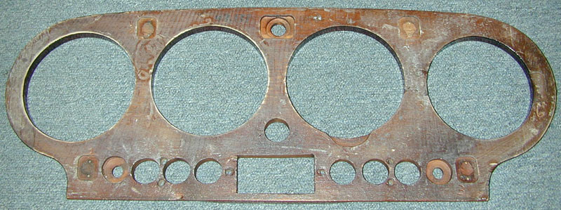 Our Craftsmen got started on the restoration of this Gauge panel before we had a chance to take a picture of it....BUT this picture of the back...is just what the front looked like. The original finish was old, scratched, and milky looking. |