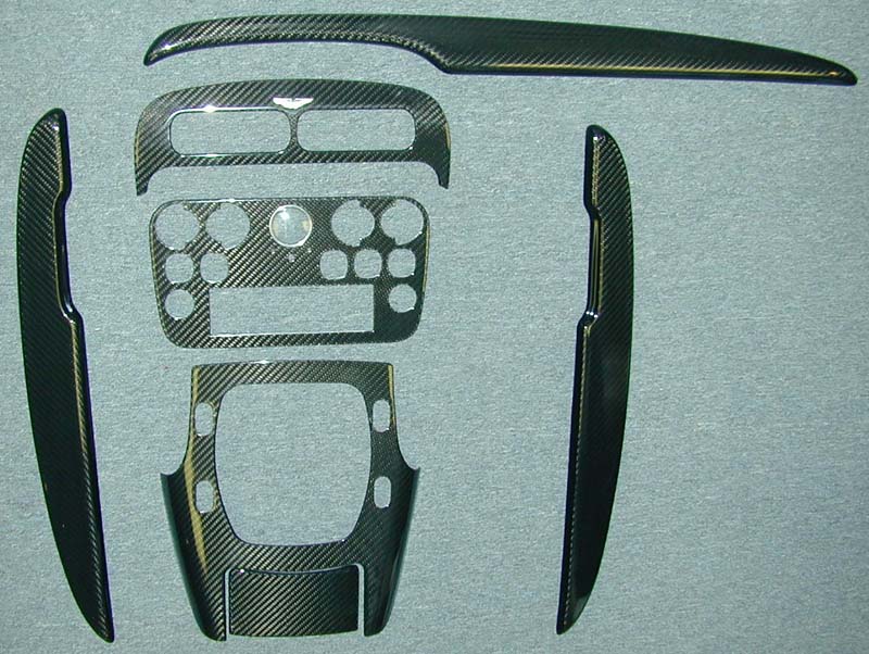 Above is an Aston Martin DB7 AFTER we refinished it. Aston Martin offered "carbon fiber" as an option in place of a wood veneer , and like their wood counterparts, the same clear finish was applied. The clear on this set had developed hairline cracks in it...and we Refinished it for our customer |