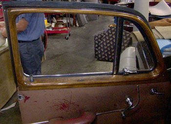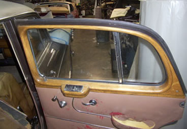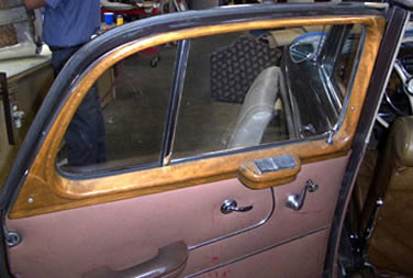 Here is a picture of what our New Door Trim Panels look like installed...along with the stock woodwork we restored. |
