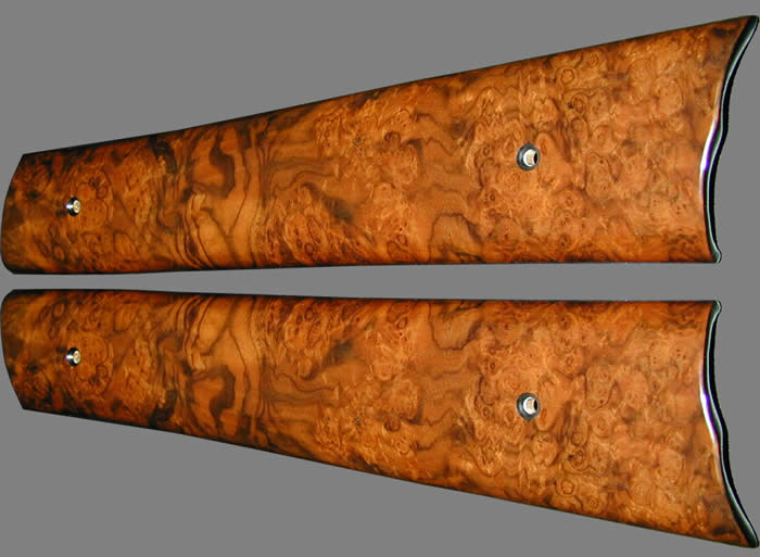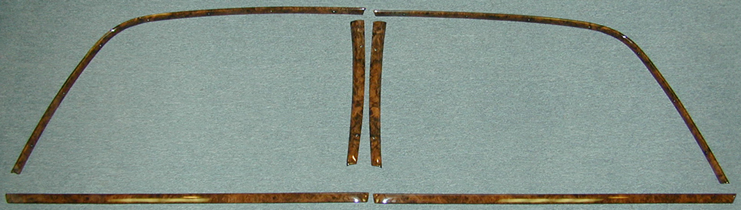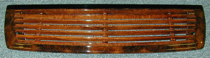 The stock Rear Window Trim from Mercedes-Benz was aFigured Grain Walnut (often refered to as straight grained walnut) and the picture below shows the part we manufacture in Figured Grain Walnut. |