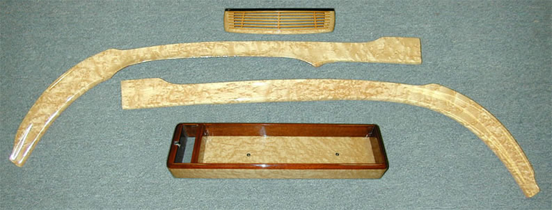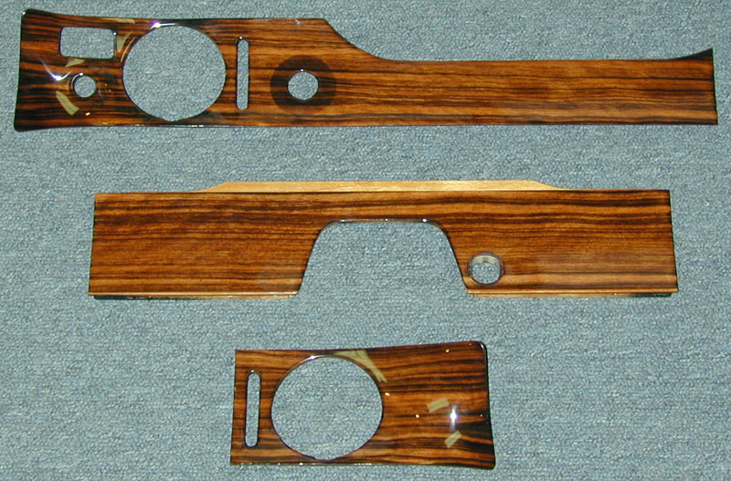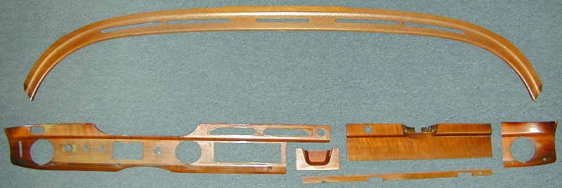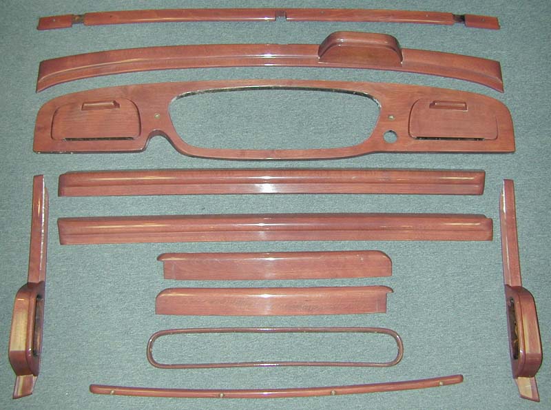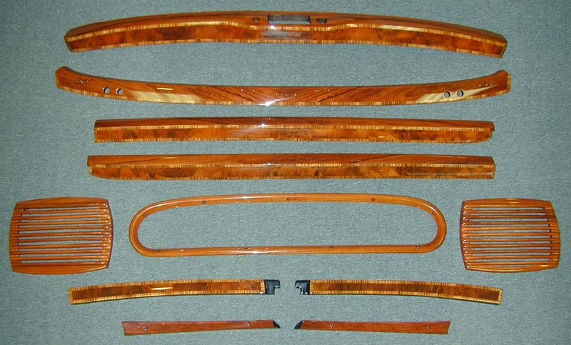 We Reveneered and Refinished All of the woodwork for our customer. Above are the Dash Wood Trim Panels & the Windshield Bow. |