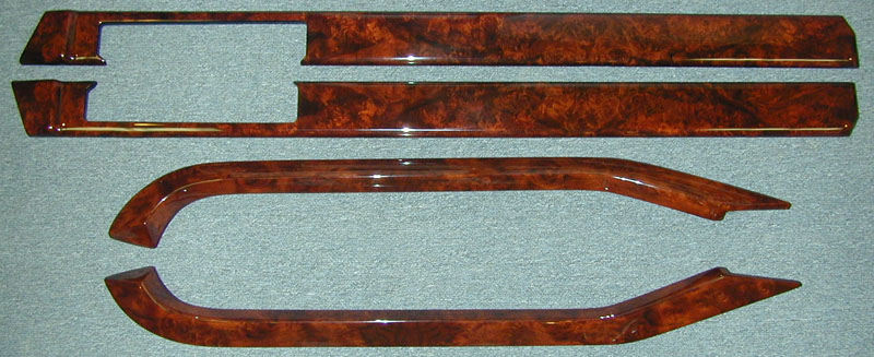 In addition to Restoring the woodwork in these gorgeous Mercedes, we are proud to announce that we are manufacturing NEW Door Trim Panels - replicating the parts that were originally offered as an option by AMG. We recommend that you have us restore your orginal woodwork at the same time that you have us make you the New Door Trim Panels. That way you are assured that your stock parts look showroom new. Additionally, it allows us to get the best possible "compliment" when we make you your New Door Trim Panels. Below are Before and After pictures of some of the parts we restored for one of our customers. |