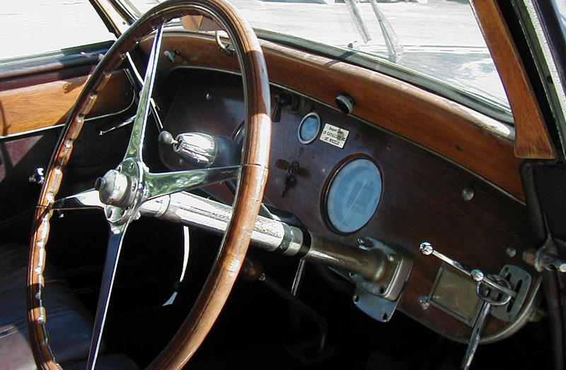 The color in this close-up of the dashboard is correct. The Fiddleback Walnut veneer is absolutely stunning. |