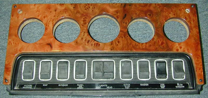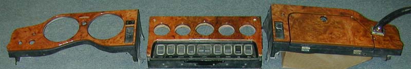 Here you can see the parts that we manufacture for the E-Type. Pictured further down on this page is theRadio Surround Panel that we also manufacture for the E-Type. Our customer wanted us to mount them on his stock metal sub-structure, so he would know how to re-fit them after he takes the woodwork off to paint the metal and to clean up the switches. |