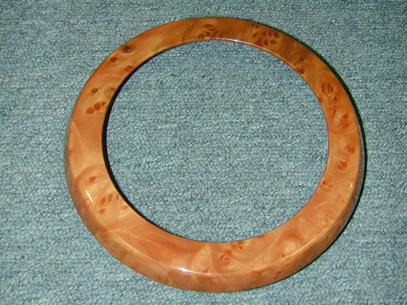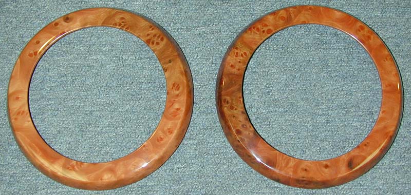 | Our customer sent us his Speaker Rings and we veneered them to match the rest of his new woodwork. |